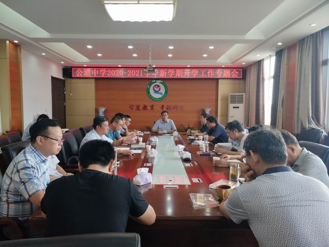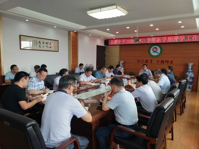 8月25日上午9:00,公道中学在学校宜思楼四楼会议室召开了2020-2021学年新学期开学工作专题会,对新学期开学准备工作进行了部署。会议由公道中学党总支书记、副校长李兆兵主持,学校全体行政人员参加了本次会议。