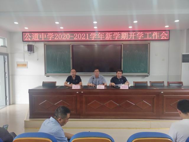 2020年8月26日上午,公道中学2020-2021学年新学期全体教师工作会在毓贤楼阶梯教室举行,全校160多名教职工参加了会议。会议由公道中学党总支书记、副校长李兆兵主持。