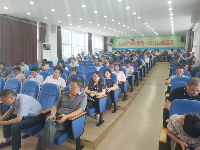 李兆兵书记首先对我校2020届高考辉煌成绩的取得作了回顾和总结,同时对新学期工作进行了部署。其次,他带领全体教师进行了师德师风专题学习,要求全体教师要为人师表,清正廉洁,展示良好的教师形象。最后,他着重强调了新学期疫情防控的重要性,提出疫情防控要从应急状态变成常态化,对防疫的具体工作进行了部署安排。今年新入职的教师在会上作了自我介绍,表达了他们对新环境新工作的展望,受到了全体教师的热烈欢迎。