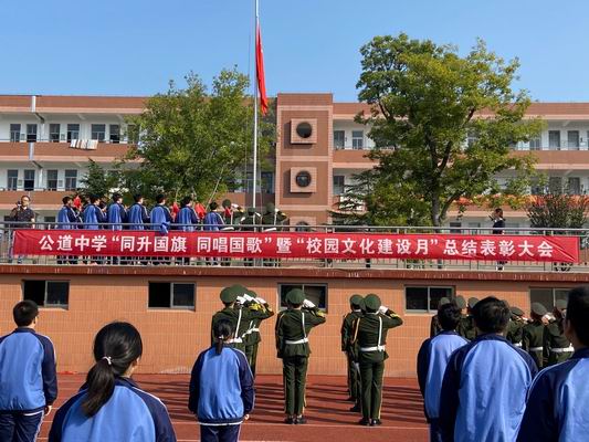 9月30日清晨,公道中学1800名师生同升国旗、同唱国歌。用激情澎湃的歌声向祖国致敬!学校党总支书记、副校长李兆兵、校长助理吴正兵等相关校领导参加了活动。