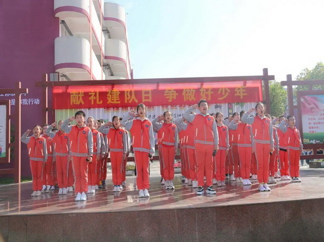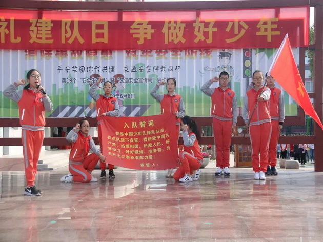 活动中,六(9)中队的少年队员以诗朗诵《红领巾之歌》传递着所有少年队员对少先队的深深祝福;队员们在大队长窦之的带领下重温入队誓词,嘹亮的誓言响彻校园;学校大队部还向全体少先队员发出了倡议——文明、守纪,做新时代的好少年。