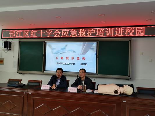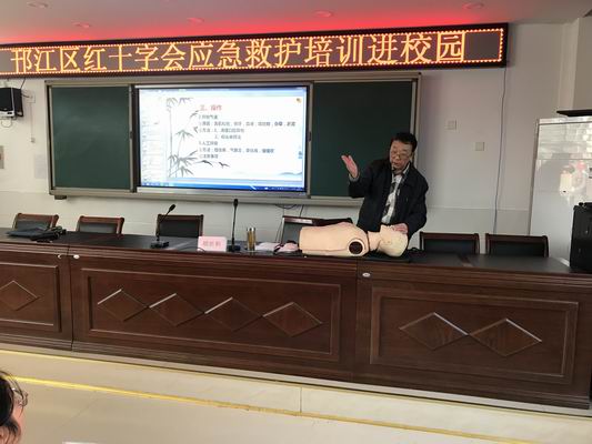 11月18日,公道中学组织开展了应急救护知识培训活动,邀请了邗江区红十字会副主任医师胡世和为同学们进行专题培训。本次活动由学校德育处杨正海主任主持,高一、高二年级各班代表共120余人参加。