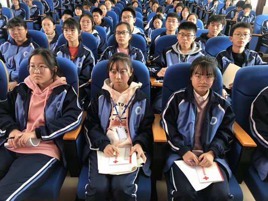 本次活动首先由红十字会马主任发放现场救护手册,接着德育处杨正海主任介绍主讲嘉宾。他要求同学们认真学习现场救护手册,做好记录,并强调活动结束后到各自班内进行宣讲,争做一个应急救护知识的宣传员。最后由胡世和主任对学生们进行应急救护知识培训。胡主任从心肺复苏的概念、意义、操作方面一一讲解,特别是在操作过程的讲解中,胡主任边讲解边示范,同学们也认真聆听,及时记录。最后胡主任介绍了自动体外除颤仪(AED)的作用及意义和使用方法。