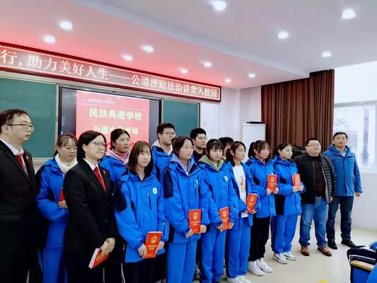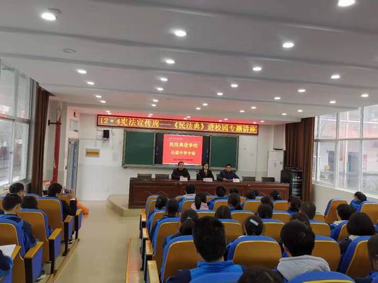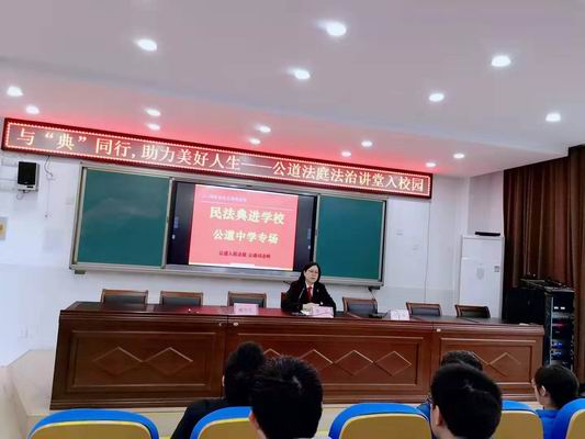 为建设平安校园、法治校园,切实提高学生的法律意识和法治理念,助力青少年的美好人生,11月26日,公道中学联合公道人民法庭、公道司法所,开展了“《民法典》进校园”的讲座,同时给同学们送上最新修订的《民法典》。活动由校德育处主任杨正海主持,公道人民法庭庭长李五、公道司法所所长阚有生、公道中学校长助理吴正兵一同出席了活动。
