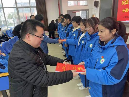 随后,公道司法所所长阚有生将最新修订版的《民法典》,赠与同学们和老师们阅读学习。