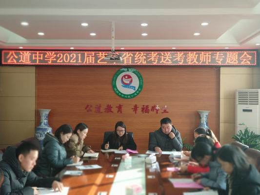 12月1日上午,在学校宜思楼四楼会议室召开了公道中学2021届艺术生省统考送考教师专题会议。会议由吴爱华校长助理主持,分为三个阶段进行。