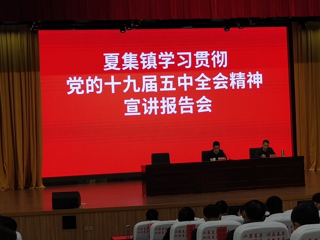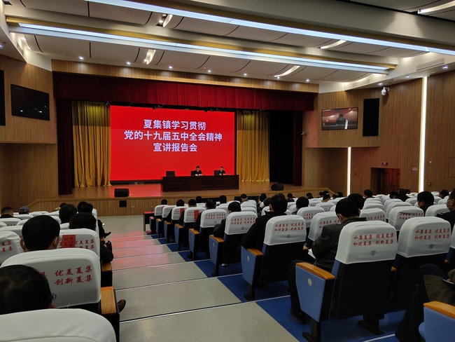 为深入学习贯彻党的十九届五中全会精神,12月7日下午,夏集镇党委政府在镇文体活动中心会议室举行党的十九届五中全会精神宣讲报告会。本次报告会以视频会议的形式进行,共设1个主会场和18个分会场。全体党政班子成员,各办局副职以上干部,各村(场)社区支部书记,部门单位副职以上干部,全体村干部、党员群众代表参加此次活动。