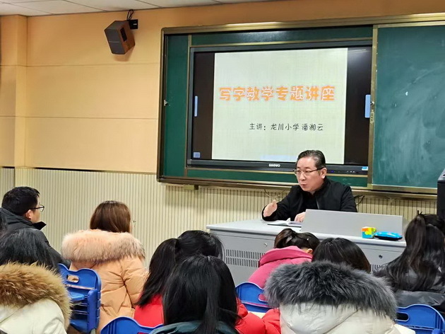 12月8日下午,扬州市特级教师、龙川小学校长潘湘云为该校全体语文教师、全区各学校在龙川小学跟岗的新入职语文教师。讲座开篇,潘校长便指出了抓好学生写字的重要性与必要性。