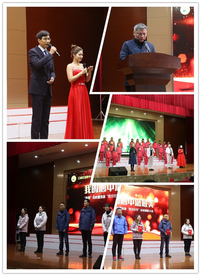区教育局初教科赵建昌科长、宜陵镇党委委员、宣传科王璐科长、高捷电子有限公司经理乔晓军为在各项评比中获得一等奖的班主任及家长颁奖;接着班主任代表徐俭丽老师发言,她倾诉了班主任内心深处最真诚的声音及对孩子们满满的爱。