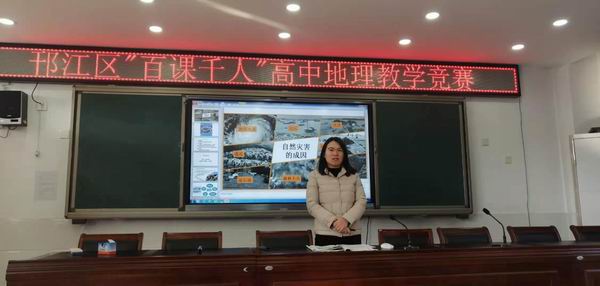 来自区内5所学校的6名选手通过层层选拔参加了此次说上课比赛。参赛选手们准备充分,他们在12月25日上午8点前到达公道中学,抽签比赛顺序号并取回说上课的课题《自然灾害的成因》进行准备。参赛课精彩纷呈,各有特色,6位选手老师充分发挥了自己的实力,展示了扎实的教学基本功和较好的地理学科素养。
