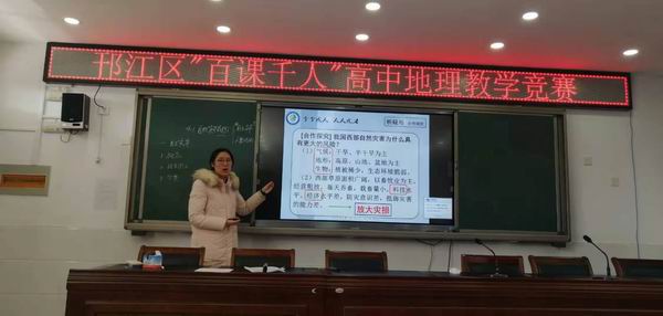 为进一步落实邗江区教育局相关工作要求,切实推进新课程、新教材、新高考改革,促进师生可持续发展,创响“学在邗江”教育品牌。2020年12月25日,邗江区第四届“百课千人”(高中地理)教学比赛活动在公道中学举行。本次活动由邗江区教师发展中心中学研训部高中地理研训员王方兵主持。