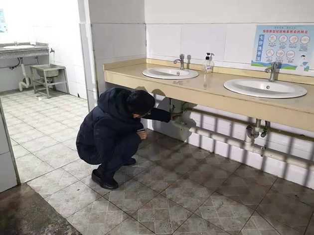 检查人员首先认真查看了邵伯高级中学的供水设施,提前做好保温措施,防止水管等冻住,进而影响正常的教学和生活秩序。对于悬挂的标语,摆放的戗牌等进行了加固,确保不会被大风吹落吹倒。随后,检查了邵伯高级中学的配电房设施,查看了防鼠网有没有破损。