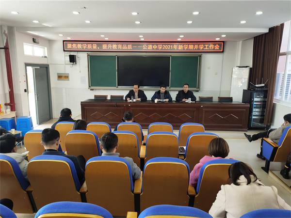 2月19日下午,公道中学全体教职工在学校毓贤楼多功能教室集中,召开了2020-2021学年第二学期开学初工作会,会议由学校周宝桃副校长主持。