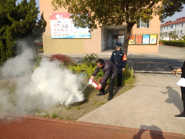 汤汉宝副校长对疏散演练的过程进行了简要的点评和总结,韩勇副校长就常见消防灭火器的种类和如何使用作了详细讲解,紧接着张杰老师用灭火器现场演示了扑灭明火的全过程。