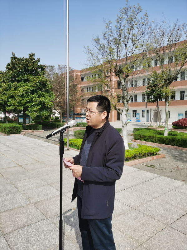 伴着铿锵有力的《义勇军进行曲》,鲜艳的五星红旗在蔚蓝的天空里飘扬。公道中学全体师生站在操场上,聆听高一(1)班学生代表孔雨同学“系好人生的扣子,争做党的接班人”的主题演讲。孔雨同学从当代中学生的角度,提出要从细小处着手,学习上认真听讲,提高学习效率;生活上,友爱同学,提高自己自理的能力等。全体同学听着感同身受的演讲,内心有深深的触动。