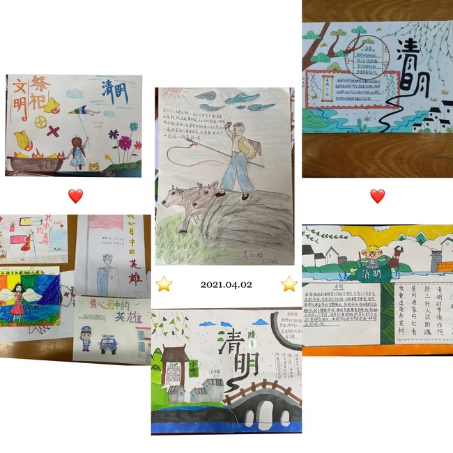 各中队召开以清明为主题的班队活动,介绍由寒食到清明节的历史变迁,风俗典故,开展清明诗文朗诵会,出一期以清明为主题的黑板报,画一份清明手抄报。"人间最美四月天,挥去春寒尽清明”倡导学生在家长带领下利用清明小长假,走进自然,郊游踏青,用相机捕捉春天,定格美景。