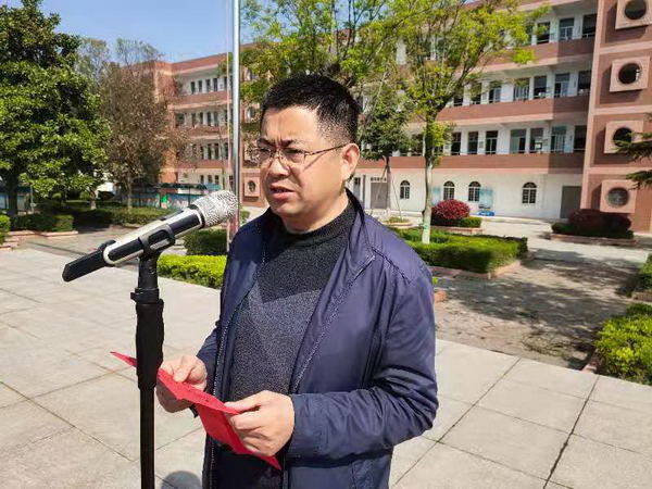 首先,由高一学生代表李朗同学向全体同学发出倡议:作为全国文明校园的学生,应当勇于拒绝校园暴力,不以暴制暴,并敢于揭发校园非法行为,同时要增强自我法律意识。