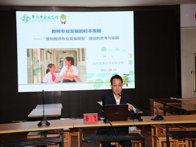 最后,教育部中小学名校长领航工程“名校长领航班”学员、享受国务院政府特殊津贴的专家、山东省枣庄市实验学校校长孙飞作了通识培训讲座《教师专业发展的校本策略》,孙校长结合枣庄实验学校的发展历程及办学定位,重点介绍了该校在核心素养理念下的校本课程建设及教师专业成长的实施策略,让在场的教师对课程改革、教育教学管理及专业成长有了深刻的理解与深度思考。