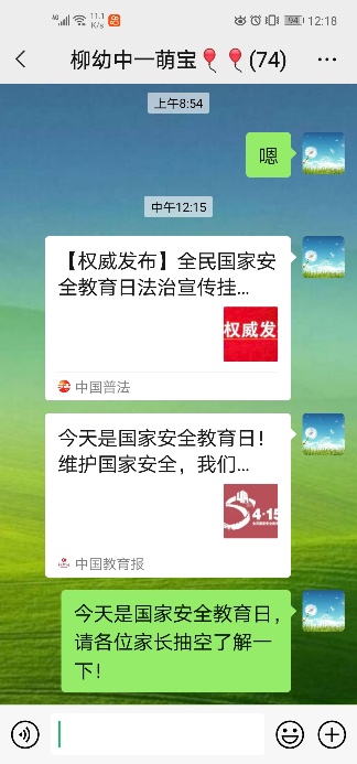 4月15日是我国第26个国家安全教育日。柳堡镇中心幼儿园各班开展了以“珍爱生命 快乐成长”为主题的生命安全教育活动,活动中幼儿了解了如何自救、防灾、逃生等方面的安全知识,正确认识生命,懂得生命的珍贵,保持积极、乐观、阳光的心态,健康茁壮成长。另外各班利用家长群向家长宣传国家安全教育日内容,人人树立国家安全意识,自觉关心、维护国家安全,共同守护我们美好的家园!