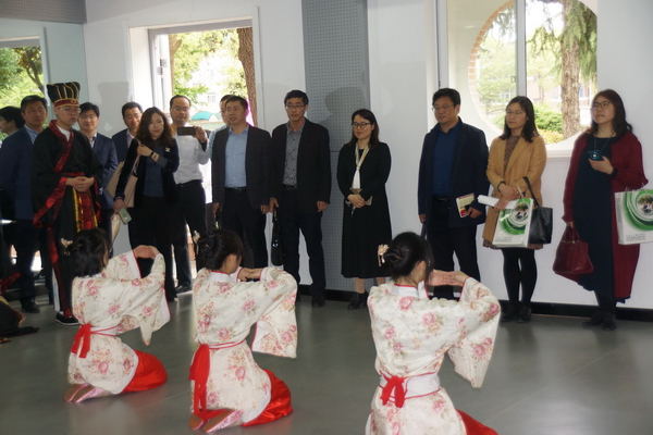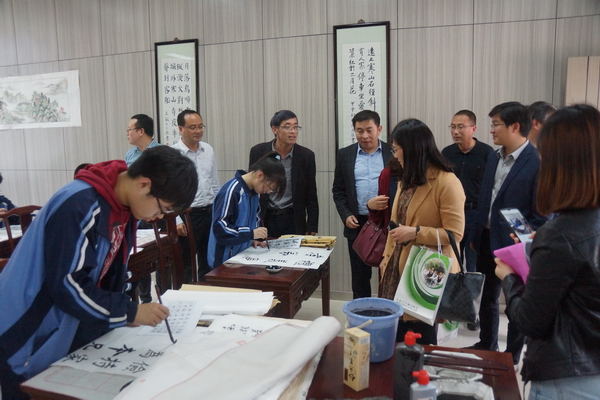 专家组首先现场走访了校园,察看了项目工程物型文化建设成果与物态成果的使用情况。在美术教学中心学礼实践馆,大家观摩了学礼书法课和学礼素描课;在学生发展中心,礼乐社团《唱支山歌给党听》、意大利歌曲《妈妈》吸引了专家们的眼球;在学礼堂,正在举行的《汉礼之女子成人礼》受到他们一致肯定;还有温馨书吧、阳光心苑、校友林、孔子园、阮元像、三碑亭……结合区局领导沈文涛、公道中学李兆兵书记等的介绍,专家们对公中65年的校史文化、办学特色和近年来的办学成果有了更深的印象。