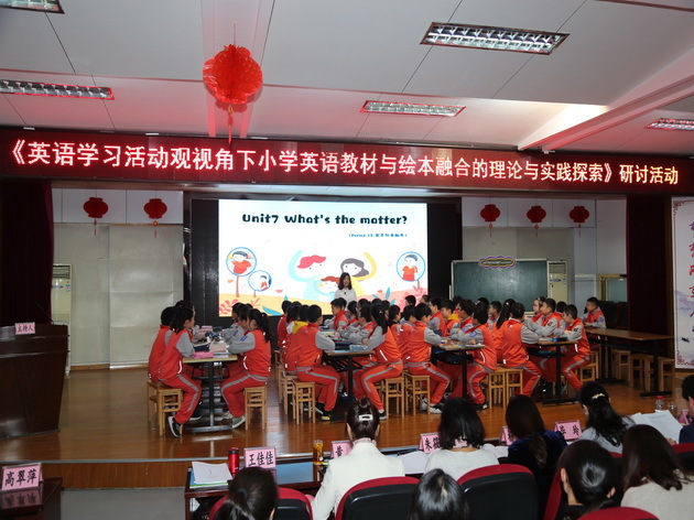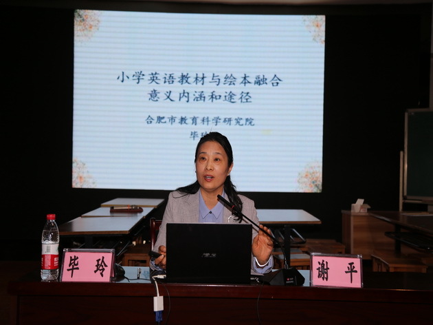 上午两节课为同课异构,由江都区实验小学周晓丽和宝应县教育局教研室陈群执教,内容为四下Unit7What'sthematter?与江苏版《丽声北极星分级绘本》(四下)Eliza's bad day融合的研讨课。两节课后,扬州市英语教研员谢平老师对两节课进行了精彩的点评。接下来,安徽省合肥市英语教研员毕玲主任做专题讲座《小学英语教材与绘本融合的意义、内涵与途径》。