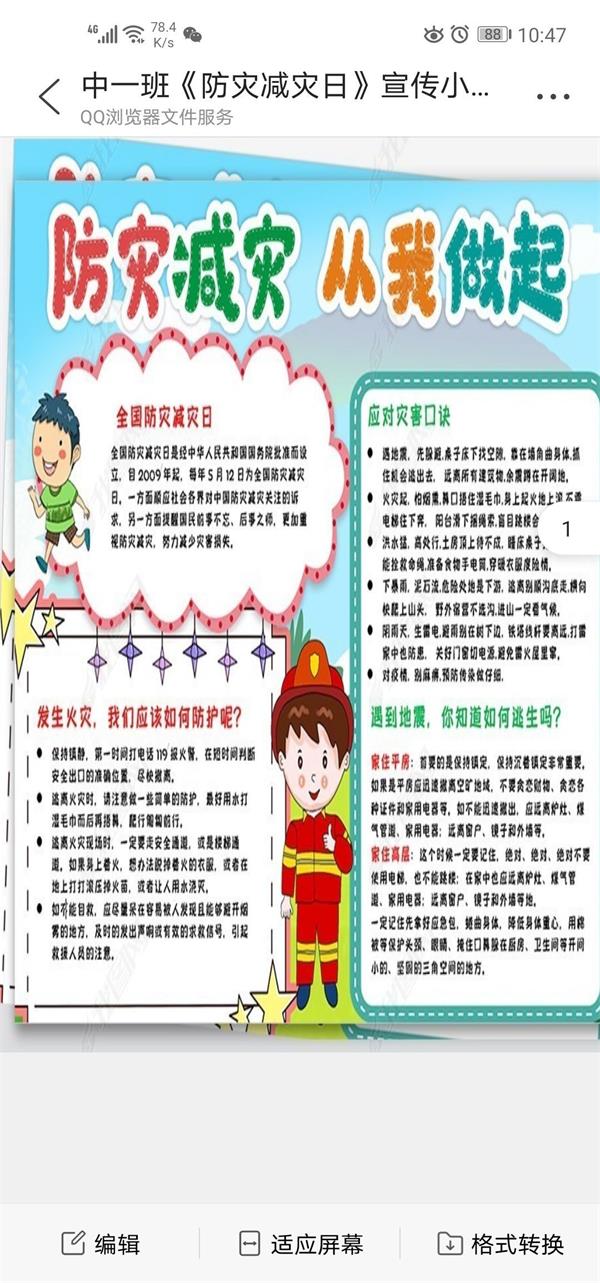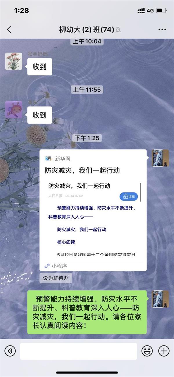 为了提高我园广大师生防灾减灾意识和能力,切实做好5月8日至14日"防灾减灾宣传周"的宣传教育工作,柳堡镇中心幼儿园以《教育局防灾減灾日活动方案》的通知精神为指导,以"牢记安全,警钟长鸣"为主题,开展了系列主题宣传活动。 在此期间,教师利用讲故事、看图片、播放影视作品等形式,有针对性地将防地震自然灾害的安全防护知识贯穿于幼儿园一日活动中。同时,幼儿园通过组织全园师生进行防震演练方式,增强师生员工的防灾减灾意识,扩大"防灾减灾"宣传的覆盖面。 各班教师开展组织各种形式的安全教育活动。同时班级制作宣传小报,在家长群中与家长分享学习,帮助家长了解有关方面的知识。 希望通过本次活动,大大增强了教师及幼儿们的安全意识与自护自救技能,也切实加强了幼儿园的安全教育工作。