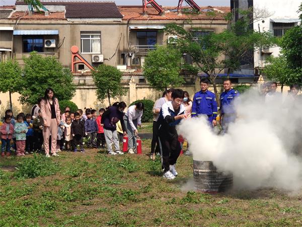 现场还设置模拟真实火灾环境,帮助幼儿通过亲身实践体验火灾现场的真实状况。消防员叔叔结合幼儿园消防安全工作的特点和火灾危险性,通过现场互动等方式向小朋友们讲解了引起火灾的主要原因、灭火的基本方法、遇到火灾如何报警、逃生自救等消防安全常识,消防宣传员为大家讲解了常见火灾的分类以及相对应使用的灭火器,并组织教职工开展灭火器实操。