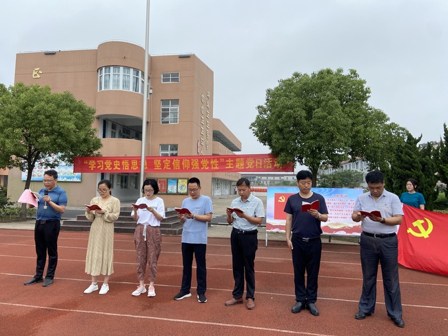 6月18日上午,浦头小学党支部全体在职党员和全校广大师生一起在学校操场举行以“学习党史悟思想,坚定信念强党性”为主题的百年党庆主题党日活动。