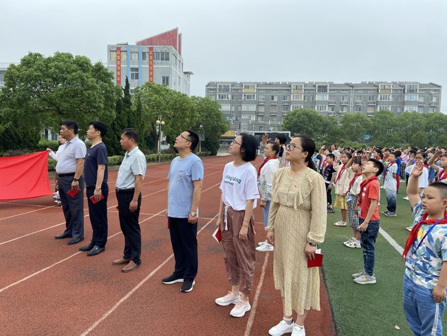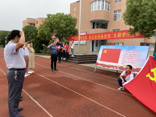 主题党日活动在庄严的升旗仪式中拉开序幕。面对国旗,师生全体肃立,高唱国歌。全体党员重温入党誓词,集体诵读党章中部分内容。随后党支部书记汤汉宝作了讲话,为全体师生作了党史学习的专题讲座。他还回顾了学校前一阶段党史学习教育开展的情况,希望全体老师要学史明理,学史力行,认真工作,更好的为党的教育事业贡献力量;希望全体少先队员要听党话、感党恩,认真学习,练好本领做一个合格的共产主义者接班人。在全体少先队员《我们是共产主义接班人》的嘹亮队歌声中活动圆满结束。