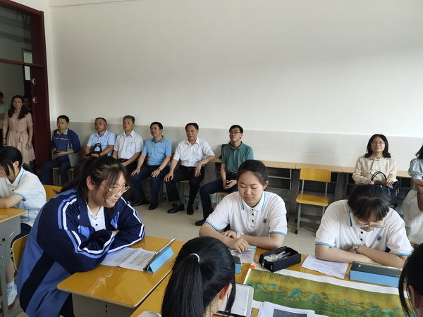 2021年6月22日上午,江苏省教育基金会步锦昆会长、魏巨龙秘书长、杨明广副秘书长和省电化教育馆奚国伟主任等一行到公道中学调研”人工智能+教育“试点学校项目。扬州市教育局副局长匡成兰,邗江区教育局局长何云峰、副局长张昕、局领导沈文涛,扬州市电教馆副馆长吴必昌,公道中学党总支书记李兆兵等陪同调研。