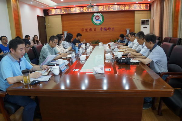 随后,在宜思楼四楼会议室举行了调研座谈会。公道中学党总支书记李兆兵就学校”人工智能+教育“试点项目开展情况以及学校的办学历史、现有规模、办学理念、办学特色、未来展望等情况向各位领导、专家作了专题汇报。