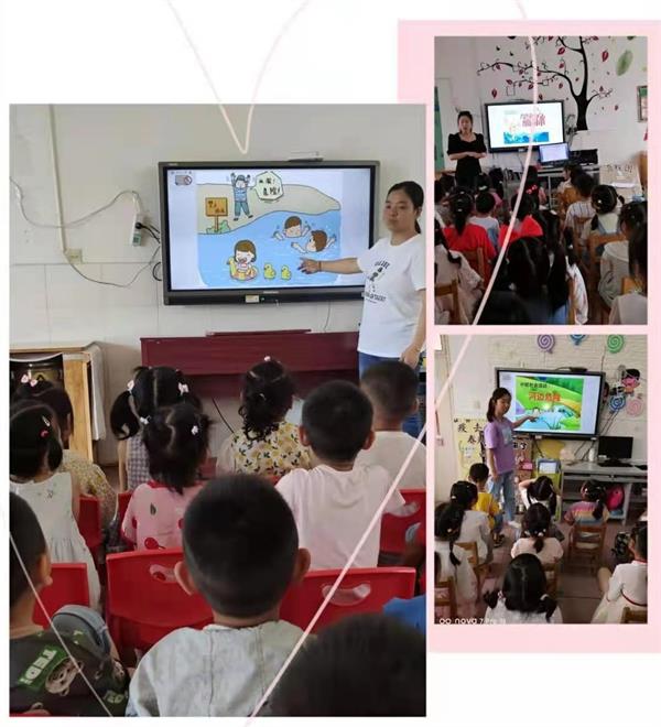 该园各班根据幼儿年龄特点,教师利用多媒体课件、图片、故事、儿歌、案例等,还组织幼儿观看宣传戗牌让幼儿了解易发生溺水事故的危险地带,分析如何避免溺水。认识防溺水的标志和如何预防溺水及溺水救护方法等各类安全知识,通过游戏问答,提高了每一个幼儿的安全防范意识。