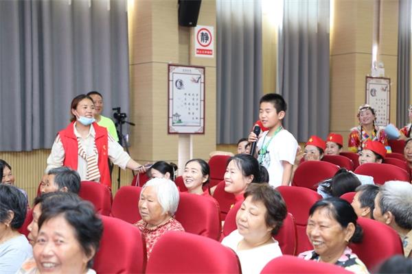 在党史知识、健康知识竞答环节,礼堂顿时欢腾起来,老的,少的,男人,女人,不管知与不知,先抢到答题机会再说,反正答对了还有奖品何乐而不为。瞧,孩子们答题答得多认真;看,妇女们拿到奖品时那抑制不住的兴奋劲;特别是有一位老大爷,风趣的回答主持人的问题逗翻了全场。