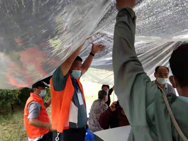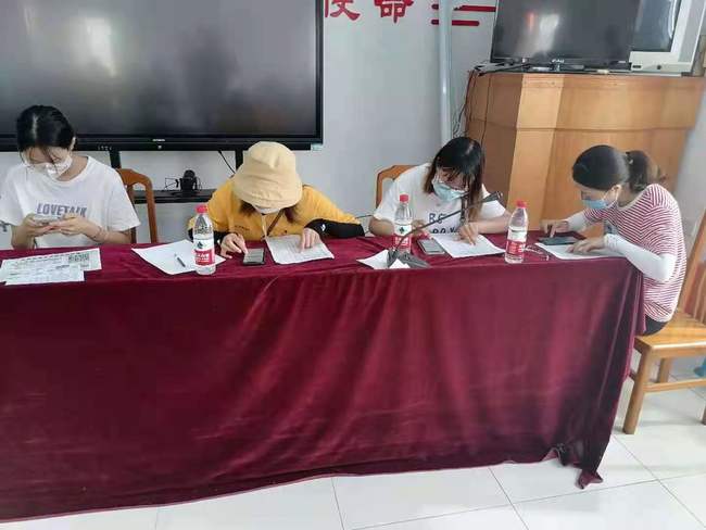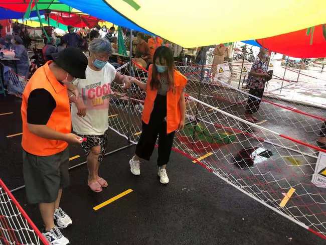 时间紧,任务重,志愿者们一到检测点就投入到紧张的工作中去,统计核酸检测点的人数,协助做好核酸检测的注册、登记、预约,及核酸检测码的下载打印等核酸检测前的一应准备工作。下午二点核酸检测准时开始,他们协助维持秩序,细心记录检测信息,友情提醒保持一米间距,搀扶腿脚不便的老人,耐心解释群众的疑问,安抚部分群众焦躁不安的情绪……厚重的防护服和面罩下汗水早已湿透,满头大汗只能插着棒棒冰棍帮着降温。下午四点左右狂风大作,暴雨倾盆,但检测工作依然在雨中有条不紊地进行着,所有人都坚守在各自的岗位上,不顾风雨,毫无怨言,两个检测点的工作一直持续到晚上近八点才全部结束。