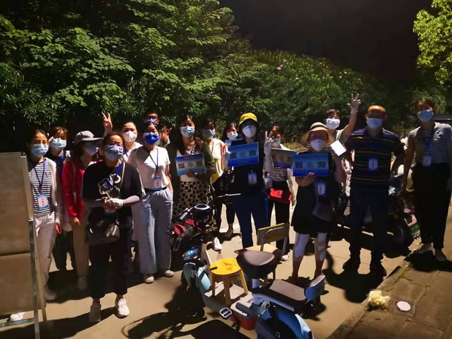 庄晓燕老师夫妇二人都在教育系统工作,女儿是大学生的,他们全家都加入到了志愿者的行列。庄晓燕老师和女儿并肩忙碌姑李坝社区检测点,从中午一点一直到天黑……