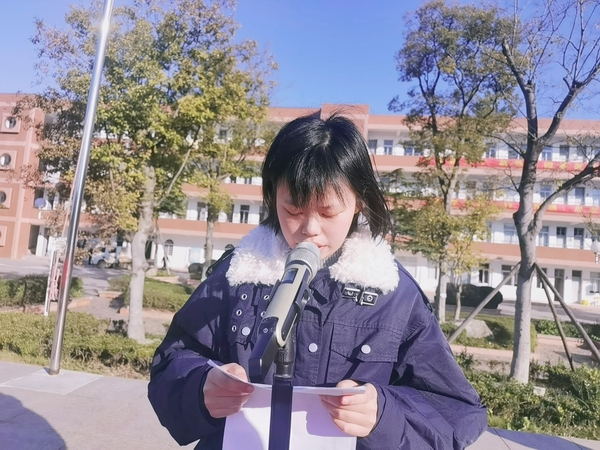 学生代表高一(10)班张霖玉同学作题为《珍爱生命 拒绝车祸》的倡议。张霖玉同学借助严谨的数据,与全体同学深刻的分析了交通事故背后家庭的支离破碎和亲人撕心裂肺,呼吁全体同学高度重视行走安全、乘车安全。张霖玉同学倡议所有同学在日常生活中,培养文明交通意识,养成自觉遵守交通法规的良好习惯,并将这份认识带回自己的家庭中,以自己的言行推动家庭整体安全意识的不断提高。