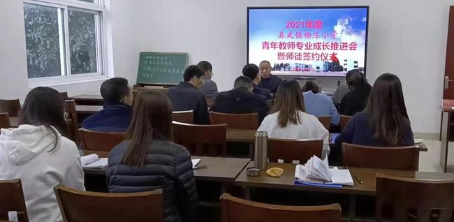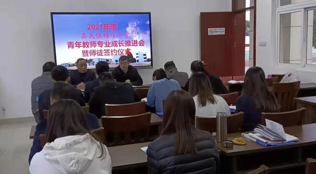 为了进一步提升青年教师的专业技能,让青年教师在专业成长的道路上有所收获、走得更远,11月15日下午,真武镇杨庄小学召开了2021年度青年教师专业成长推进会和“青蓝工程”师徒签约活动。