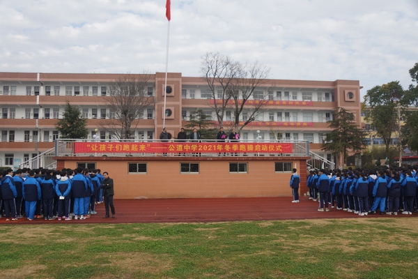 为积极响应教育部、国家体育总局、共青团中央联合发出的“全国亿万学生阳光体育长跑运动”号召,促进学生身心和谐健康发展,提高综合素质,2021年12月16日上午两节课下,公道中学举行了2021年“让孩子们跑起来”冬季跑操启动仪式。