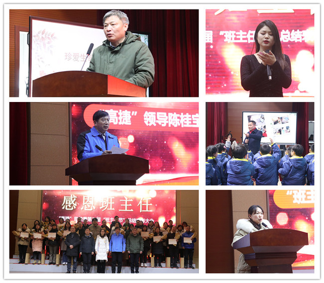 为进一步加强班主任队伍建设,营造尊重、理解、感恩班主任的和谐氛围,激发班主任的工作激情,充分展示班主任风采,2021年12月31日下午,宜陵中心小学举行了“高捷”助教暨第二届班主任节总结表彰大会。宜陵镇党委委员、宣传科科长王璐、高捷电子科技有限公司工会主席陈桂宝先生等领导嘉宾应邀观摩了此次总结表彰大会。 总结表彰会上,朱军校长首先致词,他对班主任节的成功举办表示祝贺,在总结班主任工作之后,向班主任致以节日的问候,也向一直关心宜陵小学发展的高捷电子有限公司表示敬意。 随后,副校长朱学军为班会设计竞赛获奖者颁发了证书,班会设计一等奖获得者仇海明老师现场展示了微型主题班会,精巧的设计、精彩的课堂赢得了一阵阵掌声;朱军校长为20年以上的班主任颁发功勋班主任证书;姚克扣副校长为班主任叙事竞赛中获奖选手颁发证书,一等奖获得者谢小花老师现场展示,讲述了自己当班主任的故事;高捷公司工会主席陈桂宝先生为上一年度文明班级颁发证书并致辞,他表示高捷公司在发展的同时,关心人才的培养,情系教育,他祝愿宜陵小学越办越好;最后31位光荣的班主任手捧鲜花在热烈的掌声中登台亮相,镇宣传科长王璐、高捷公司代表陈桂宝先生以及学校领导为他们颁发了班主任聘书及纪念礼包,并合影留念。 春风化雨一路有你,润物无声倾心相伴。相信此次总结表彰大会后,我们的班主任会一如既往做好各项工作,取得更加丰硕的成果,更加优异的成绩。