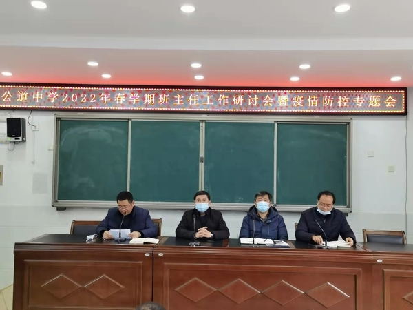 扬城春风起,冰霜昨夜除。为了提升班主任工作能力,提高班主任综合素养,进一步增强班级管理工作的针对性和实效性,2022年2月12日上午,公道中学召开了2022年春学期班主任工作研讨会暨疫情防控专题会。会议由德育处杨正海主任主持。