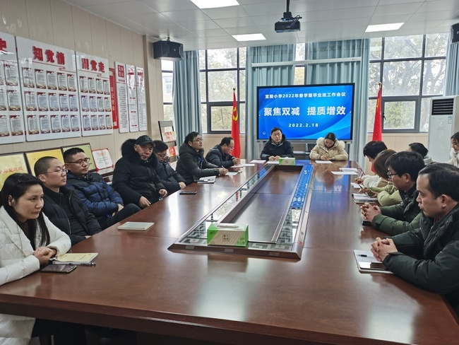 为进一步强化毕业班工作,2月18日,宜陵小学召开了题为“聚焦双减 提质增效”毕业班工作会议。校长室、教导处领导及毕业班全体教师参加了会议。