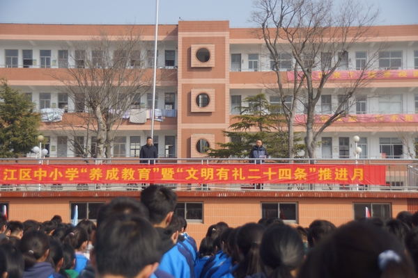 为积极响应区局文件精神,全面提升学生的整体素养和习惯养成,3月3日上午,公道中学在学校操场举行了邗江区中小学“养成教育”暨“文明有礼二十四条”推进月的启动仪式。启动仪式由学校德育处主任助理耿晓强主持。