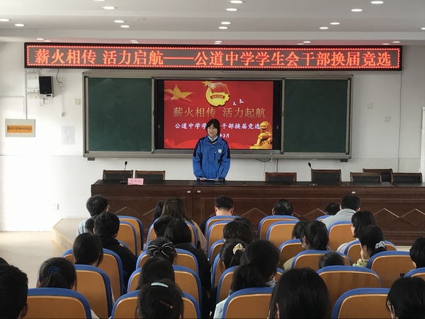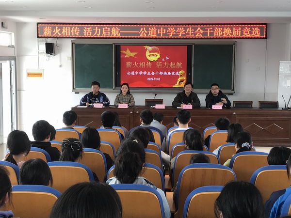3月11日中午,公道中学2022年学生会干部竞选面试活动在毓贤楼报告厅隆重举行。本次活动由公道中学学生会主席俞彦鼎同学主持,公道中学吴正兵校长助理、教务处陈志林主任、团委圣晶晶书记等全程参与。