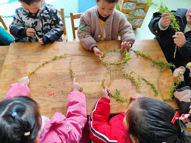 活动开始前,教师通过PPT、绘本故事等形式向幼儿讲述了清明节的由来和习俗。小班开展了“绘画、放风筝”活动,幼儿用多彩的颜色在圆盘上勾勒出美丽的清明生活画卷。他们还亲手制作了风筝,到草坪上去放飞,随着温暖的春风,风筝在天上自由的翱翔。中班举行了“插柳、编柳环和敲染”活动。幼儿头戴柳环,在湿润的泥土下插下杨柳枝。在草地上和花园里寻找花草树叶,并将它们作为染料画在布上。大班开展了“网上祭扫、红色教育、制作青团等活动,”教师带领幼儿开展网上祭扫,参观幼儿园红色教育主题墙,缅怀革命先烈。幼儿亲手制作了菊花,献给最可敬的人。幼儿还亲自动手制作青团,揉面、包青团、品尝青团,通过自己的双手品尝到了清明节的特色食品。