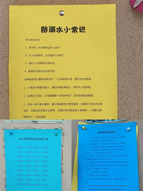 关爱生命,严防溺水!安全工作是学校教育工作开展的前提,我园通过一系列的防溺水宣传教育活动,让幼儿和家长认识到防溺水安全的重要性,并提高家长对孩子的监管意识。后期我园将一如既往,切实做好防溺水安全宣传教育工作。