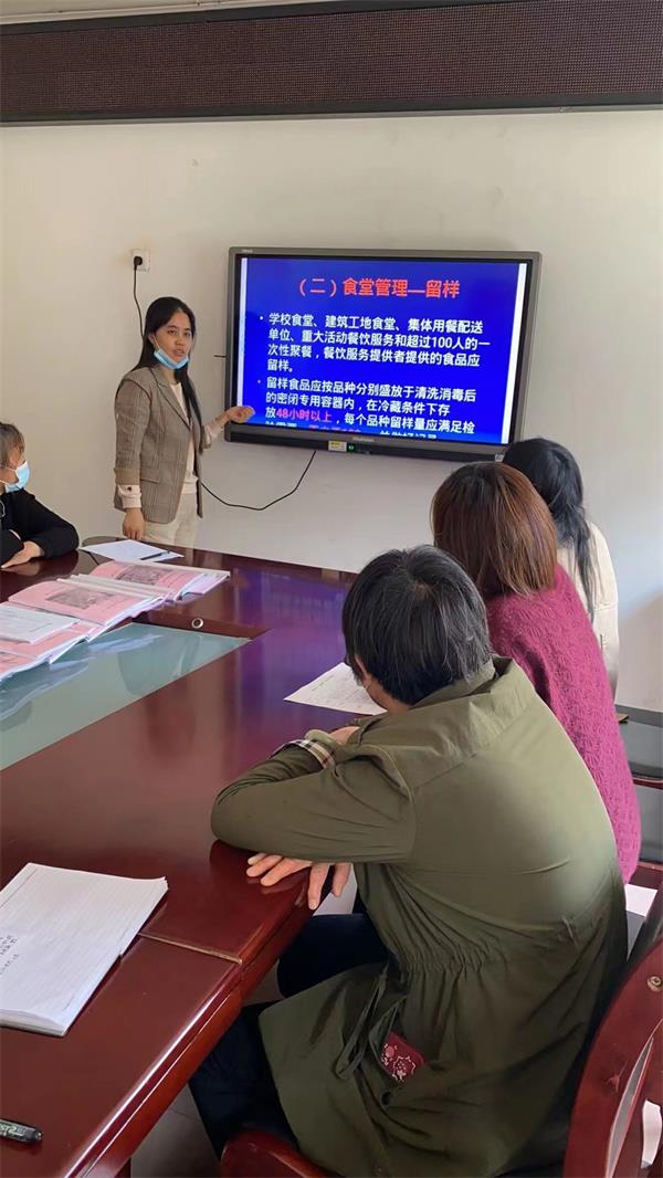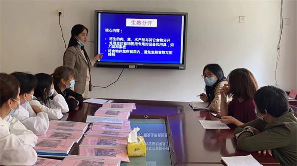 此次培训的内容主要有:食品安全管理组织及管理制度;食堂从业人员应具备的卫生操作要求;食品加工制作重要环节的操作规范以及发生食品安全事故后,应采取的基本措施等方面的法规和知识。