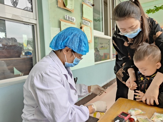 本次体检项目包括全面的体格检查、视力检查、口腔检查、血常规测定等。体检过程中,医生们用热情地微笑服务,用耐心为每一位幼儿进行细致地全面检查,并认真做好记录。最后,儿保医生刘爱芬针对今天的体检结果作了细致的分析,还对老师们进行了疫情防控工作和儿童保健知识的培训。