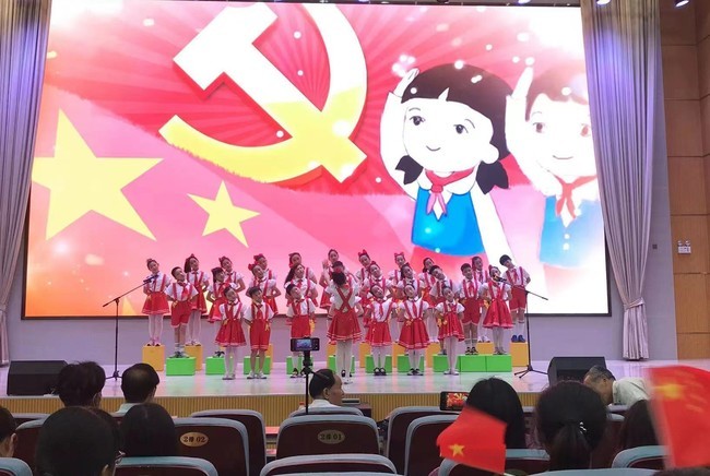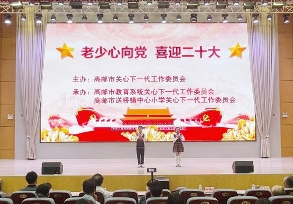 为贯彻落实中共中央办公厅、国务院办公厅《关于加强新时代关心下一代工作委员会工作的意见》,以迎接、献礼党的二十大为主线,组织“五老”在青少年中深入实施新时代立德树人工程、传承红色基因工程,引导青少年从中国共产党百年奋斗的重大成就和历史经验中汲取智慧和力量,把个人梦想融入实现中华民族伟大复兴的中国梦,在社会主义现代化建设新征程中成长成才,让红色基因、革命薪火代代相传,5月24日下午,由高邮市关心下一代工作委员会主办,高邮市教育系统关心下一代工作委员会和高邮市送桥镇中心小学关心下一代工作委员会共同承办的“老少心向党,喜迎二十大”的主题教育活动在高邮高新区实验学校书章礼堂举行。 高邮市教体局关工委陆顺斌、朱大禹等领导,送桥镇教育中心校关工委班子成员以及各中小学校(园)关工委主任莅临观摩了本次活动。 本次活动分为三个部分:第一篇章“重温党史,不忘初心”。少先队员们通过观看《红船起航》和习总书记重要讲话视频的形式学习党史。四(2)中队的少先队员们放声歌唱《童心向党》,表达了争当新时代好少年的决心;第二篇章 “学习英雄,传承精神”。“五老志愿者”郝辉生老校长和少先队员代表马美嘉为少先队员分别讲述红色故事,和大家一起重温了那段不怕牺牲、英勇斗争的革命史。《红领巾相约中国梦》的舞蹈更是诠释了少先队员们对共产党的热爱;第三篇章“喜迎廿大,庄严承诺”。师生朗诵《老少喜迎二十大 百年感谢共产党》以及舞蹈《在灿烂阳光下》,表达了少先队员们“听党话、跟党走、感党恩,同心向党,奔赴远方”的坚定信念,同时“请党放心,强国有我”的青春誓言在礼堂上空回荡。 相信通过今天的活动,少先队员们一定对中国共产党和二十大有了更深入的了解,乘着二十大的东风,让我们铭记誓言、携手并进,共创美好未来!