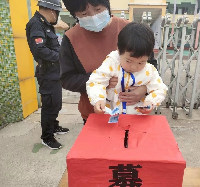 在活动中,全园教职工和孩子们纷纷献上自己的一片爱心,你十元、我三十元、她一百,小朋友们在家长的帮助下纷纷将自己手中的纸币投进爱心箱内,一张张写满爱心的纸币,饱含着芦幼全体师生的一份爱心。