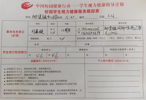 工作人员借助科学测试仪器耐心细致地为每一位学生进行视力检测。检查过程中,他们还向学生宣传科学用眼,预防近视等眼保健知识,教育学生养成正确的读写姿势和良好的用眼卫生习惯,强化了学生爱护眼睛意识,并为每一位同学填写了视力健康表,建立视力档案。